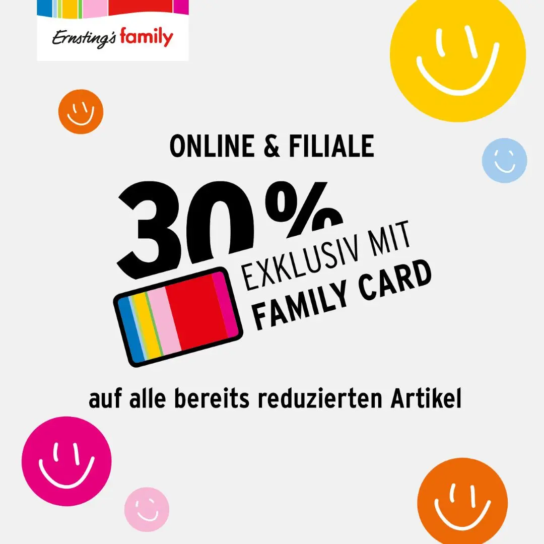 Bei Ernsting’s family gibt es 30 % auf bereits reduzierte Artikel exklusiv mit Family Card.